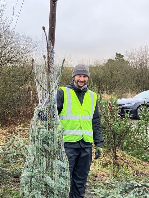 Non native Sitka spruce and lodgepole pine from the original forestry plantation at Leadburn still grow up around the woodland. However, we want to encourage native species regeneration, so each year we thin out the young spruce and pine trees and offer them for sale.